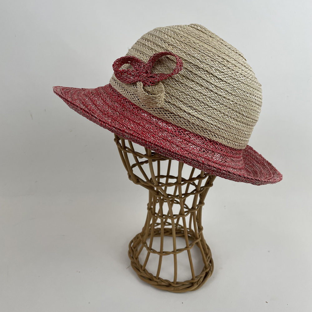 Chapeau de paille écru et rouge; chapeau de soleil